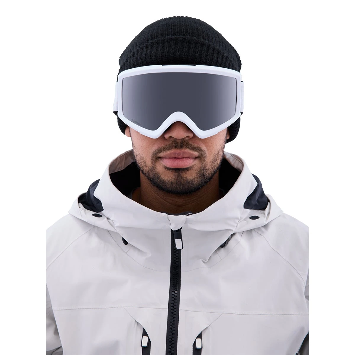 Dual-layer face foam features one layer of foam and a layer of moisture-wicking fleece for a snug seal and comfortable fit; Thermoplastic polyurethane frame is durable and lightweight but remains flexible in cold weather